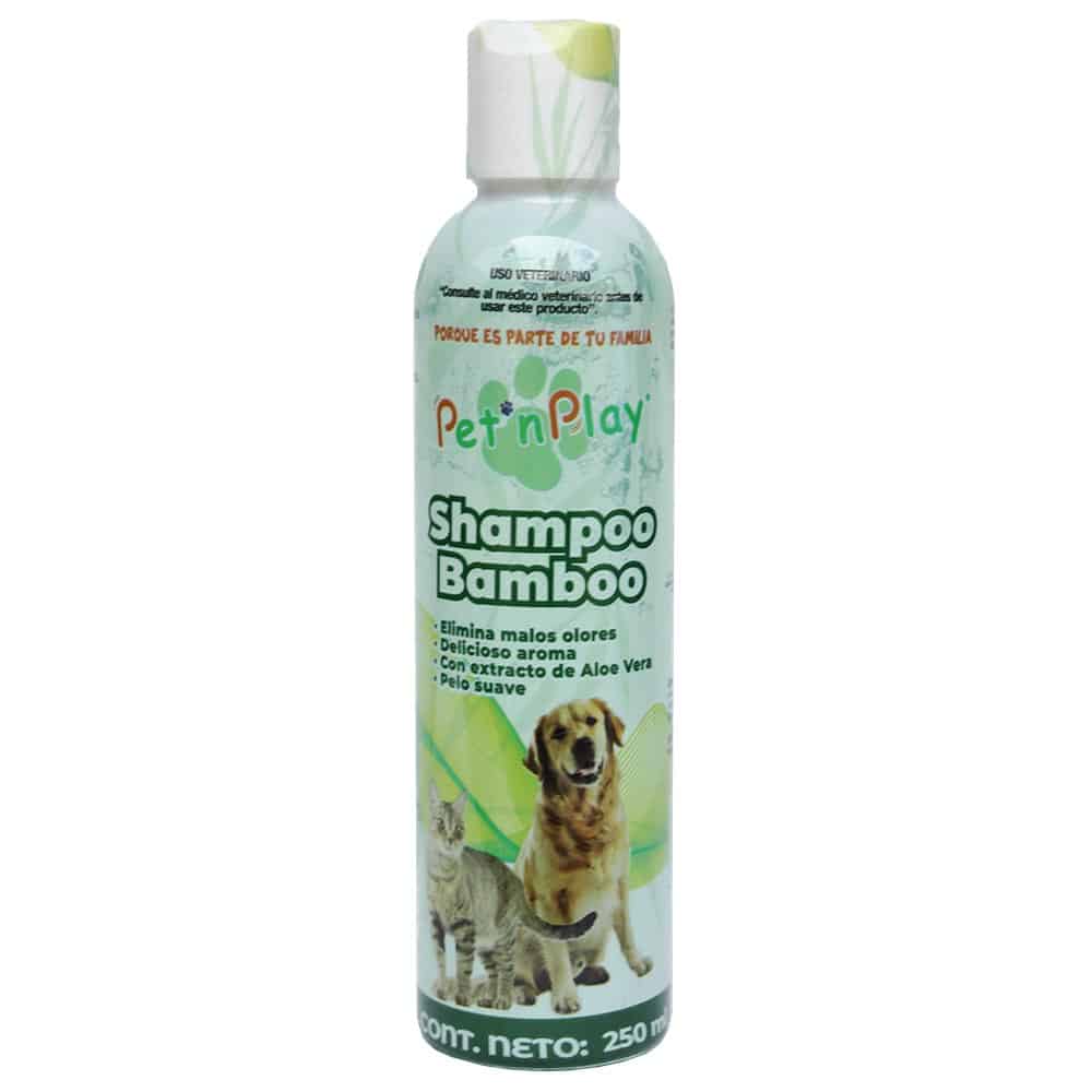 Shampoo para perros y gatos bamboo de Pet´n Play,  es un shampoo especializado  para grooming,  su fórmula dejará el pelo de tu perro o gato hidratado, suave, brillante, limpio y sin nudos.
